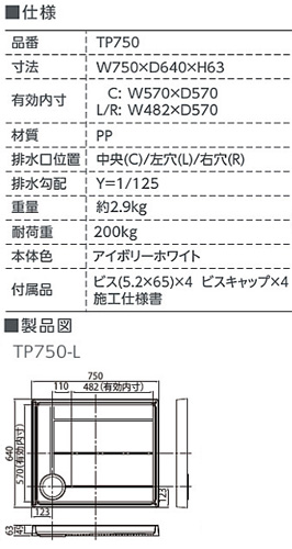 品番:TP750-LW1+排水トラップ