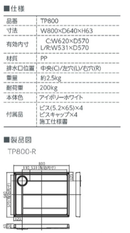 洗濯機パンセット[800サイズ][右排水][スタンダード][PP][アイボリーホワイト]