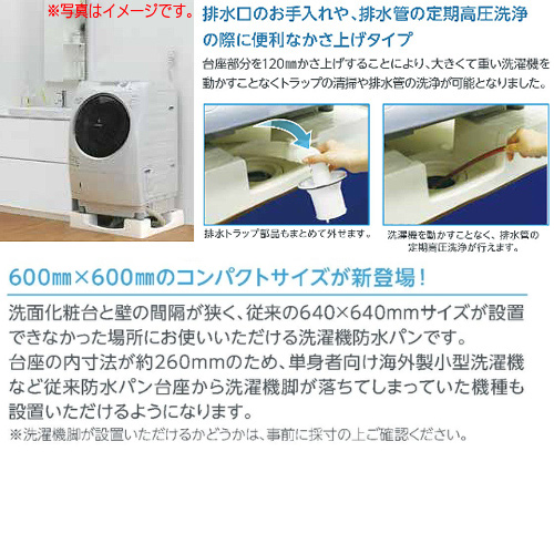 ●洗濯機パン[600×600サイズ][中央排水][かさ上げ][イージーパン][ニューホワイト]
