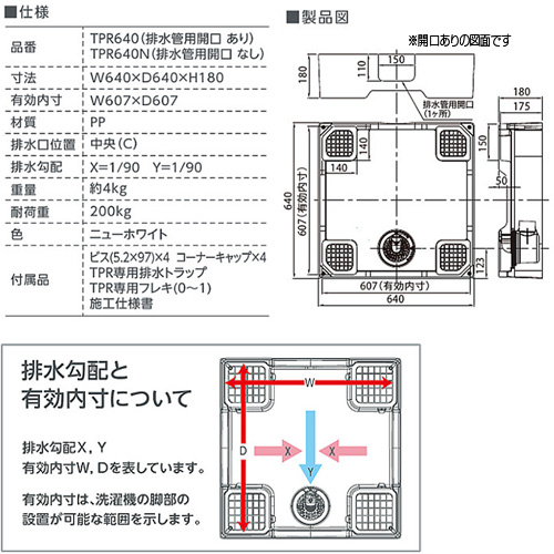 洗濯機パン[640サイズ][中央排水][排水トラップ付属][床上配管対応][サイド排水配管用開口なし][ニューホワイト]