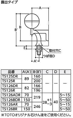 TS126AR|TOTO|水石けん供給栓[台][0.35L][φ28][露出タイプ][洗面器用][液状]|リフォームネクスト