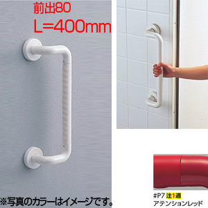 ●手すり インテリアバー[壁固定][I型][浴室用][折れ戸用][長さ:400mm][φ32][前出:80mm][オフセットタイプ][セーフティタイプ][アテンションレッド]
