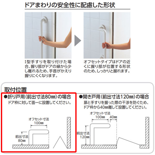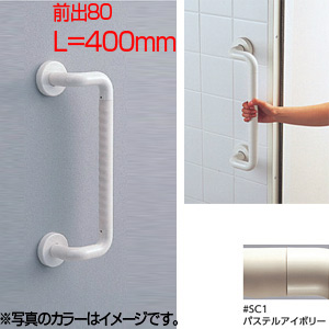 手すり インテリアバー[壁固定][I型][浴室用][折れ戸用][長さ:400mm][φ32][前出:80mm][オフセットタイプ][セーフティタイプ][パステルアイボリー]
