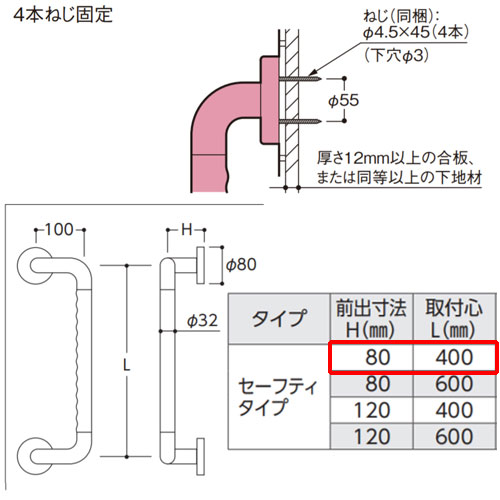 ・出入り口専用縦手すりです。横手すりとして使用しないで下さい。