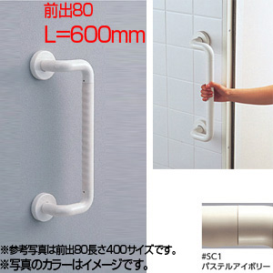 手すり インテリアバー[壁固定][I型][浴室用][折れ戸用][長さ:600mm][φ32][前出:80mm][オフセットタイプ][セーフティタイプ][パステルアイボリー]