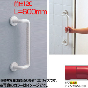 ●手すり インテリアバー[壁固定][I型][浴室用][開き戸][長さ:600mm][φ32][前出:120mm][オフセットタイプ][セーフティタイプ][アテンションレッド]
