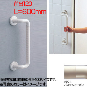 ●手すり インテリアバー[壁固定][I型][浴室用][開き戸][長さ:600mm][φ32][前出:120mm][オフセットタイプ][セーフティタイプ][パステルアイボリー]