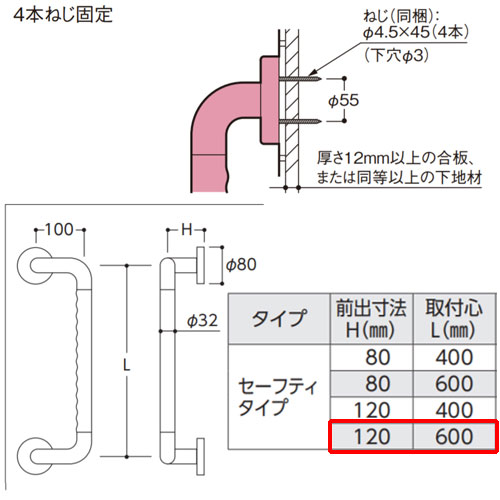 ・出入り口専用縦手すりです。横手すりとして使用しないで下さい。