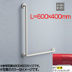 ●手すり インテリアバー[壁固定][L型][浴室用][長さ:600×400mm][φ32][前出:65mm][セーフティタイプ][アテンションレッド]