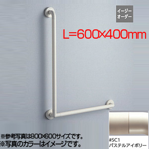 手すり インテリアバー[壁固定][L型][浴室用][長さ:600×400mm][φ32][前出:65mm][セーフティタイプ][パステルアイボリー]