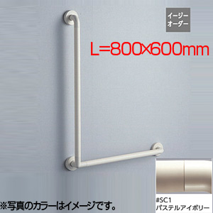 手すり インテリアバー[壁固定][L型][浴室用][長さ:800×600mm][φ32][前出:65mm][セーフティタイプ][パステルアイボリー]