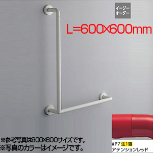 ●手すり インテリアバー[壁固定][L型][浴室用][長さ:600×600mm][φ32][前出:120mm][セーフティタイプ][アテンションレッド]