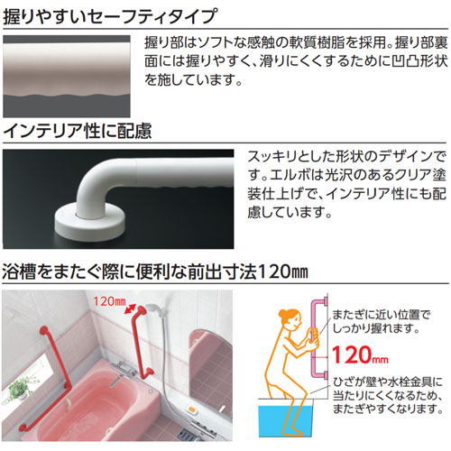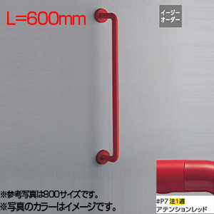 ●手すり インテリアバー[壁固定][I型][浴室用][長さ:600mm][φ32][前出:120mm][セーフティタイプ][アテンションレッド]