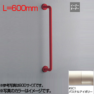 手すり インテリアバー[壁固定][I型][浴室用][長さ:600mm][φ32][前出:120mm][セーフティタイプ][パステルアイボリー]