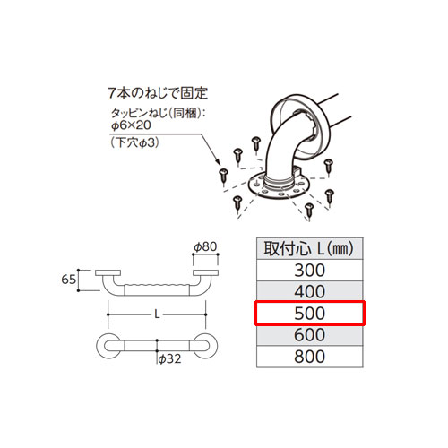 ・取り付け長さ:500mm