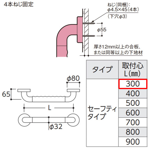 ・取り付け長さ:300mm