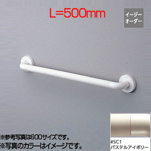 手すり インテリアバー[壁固定][I型][浴室用][長さ:500mm][φ32][前出:65mm][セーフティタイプ][パステルアイボリー]