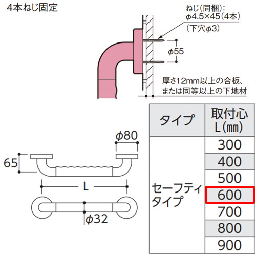 ・同梱品:壁固定ねじ4本×2箇所分(φ4.5×45)