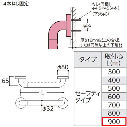 ・同梱品:壁固定ねじ4本×2箇所分(φ4.5×45)