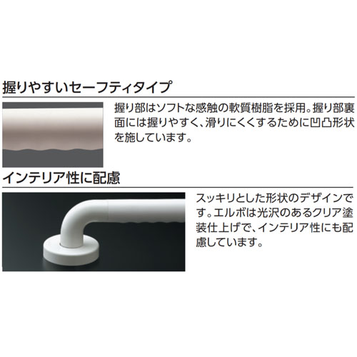 手すり インテリアバー[壁固定][I型][浴室用][長さ:900mm][φ32][前出:65mm][セーフティタイプ][パステルアイボリー]