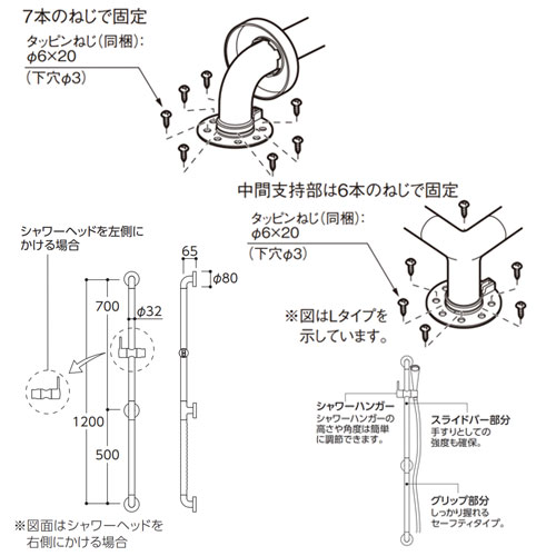 ※シャワーハンガーが動く範囲に干渉物などがないか十分確認してから取り付けてください。