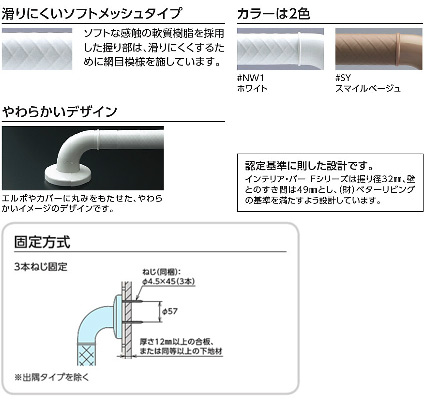 手すり インテリアバー[Fシリーズ][壁固定][I型][浴室用][長さ:300mm][φ32][前出:65mm][ソフトメッシュタイプ][ホワイト]