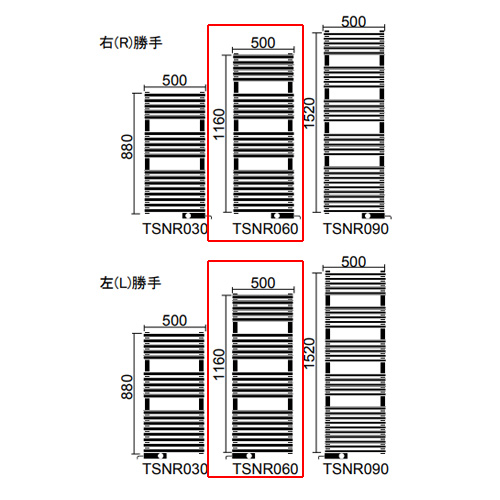 ●タオルウォーマー[リミテッドスペースヒーター][TSN-Rシリーズ][奥行118mm][標準取り付け仕様][幅500mm][高さ1160mm]