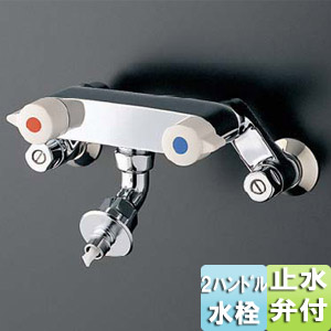 緊急止水弁付2ハンドル混合栓[ピタットくん][壁給水タイプ][一般地]