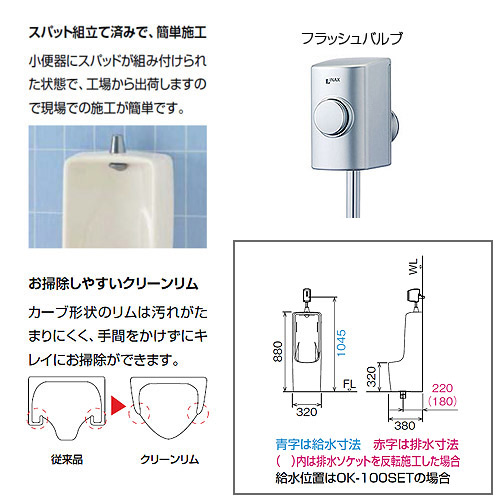 小便器セット[小形][床置][床:排水芯220mm][フラッシュバルブ][トラップ着脱式][ハイパーキラミック][一般地][ピュアホワイト]