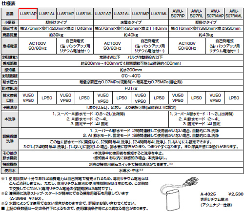 ・使用水:水道水・中水(水質によっては使用できない場合がありますので、詳細はお問い合わせください。