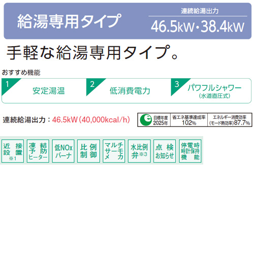46.5kWの大出力。手軽な給湯専用タイプ。