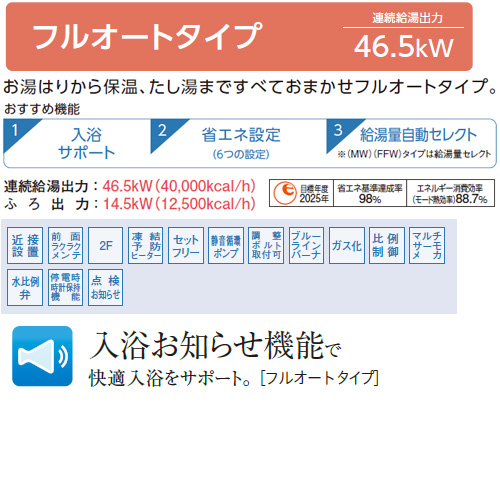 「フルオートタイプ」は、お湯はりから保温・たし湯まですべて自動。