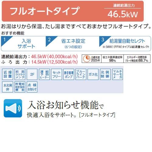 「フルオートタイプ」は、お湯はりから保温・たし湯まですべて自動。