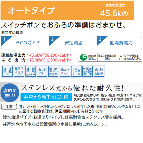 ステンレス製給湯配管だから腐蝕に強く、優れた耐久性!井戸水や地下水に対応。