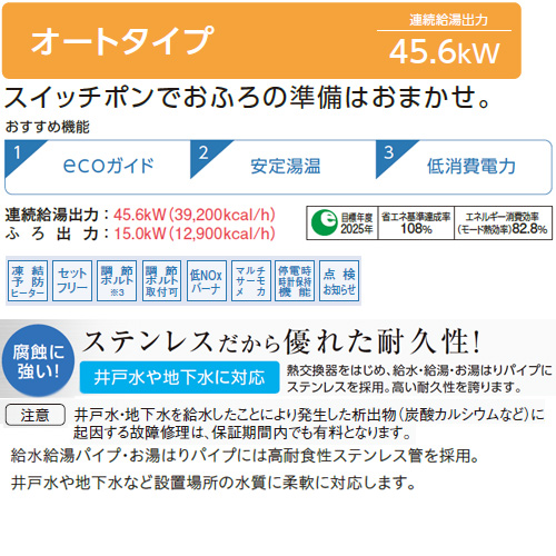 石油ふろ給湯器[エコフィール][浴室・台所リモコン付属(ボイス)][NEシリーズ][オート][貯湯式][屋外据置型][前面排気][4万キロ][ステンレス外装]
