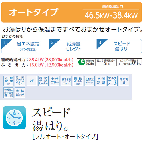 「オートタイプ」は、お湯はりから保温まで自動。