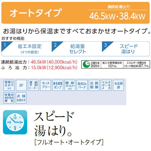 「オートタイプ」は、お湯はりから保温まで自動。