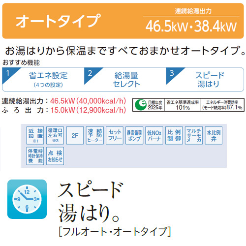「オートタイプ」は、お湯はりから保温まで自動。