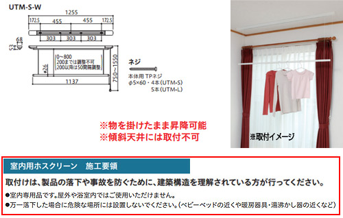 室内用ホスクリーン昇降式ヒモタイプ[UTM型][長さ:1255mm]▲
