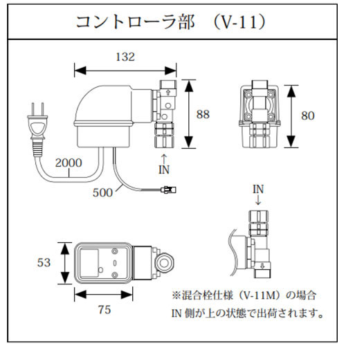 ※流量調整及びメンテナンス用のため、コントローラの直前に必ず、止水栓又は、ボールバルブを設置してください。