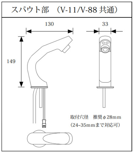 ・スパウト取付け:推奨穴径 Φ28mm(Φ24〜Φ35まで取付け可能)