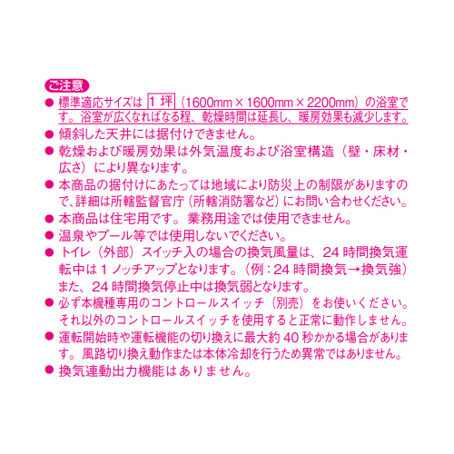 ・衣類乾燥・浴室乾燥・暖房・涼風・換気の1台5約