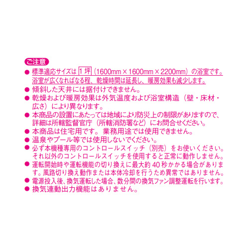 ・衣類乾燥・浴室乾燥・暖房・涼風・換気の1台5約