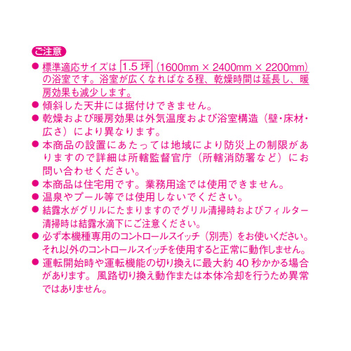 ・衣類乾燥・浴室乾燥・暖房・涼風・換気の1台5約
