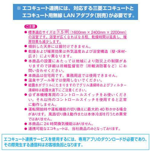 ※エコキュート連携には、対応する三菱エコキュートとエコキュート用無線LANアダプタ(別売)が必要です。