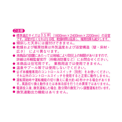 ・衣類乾燥・浴室乾燥・暖房・涼風・換気の1台5約