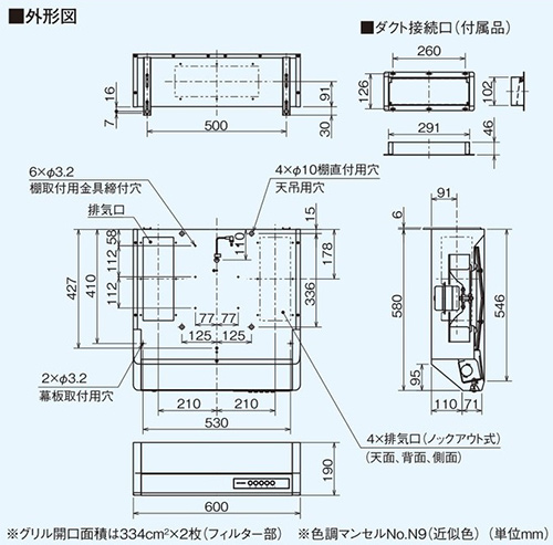 レンジフード[ターボファン][幅60cm][平型][後/上部/左右排気][大風量タイプ][ホワイト]