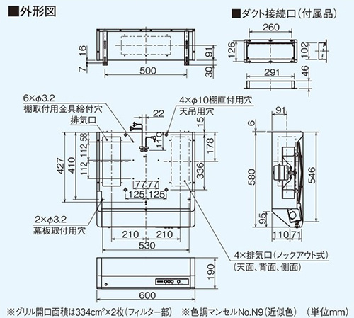 レンジフード[ターボファン][幅60cm][平型][後/上部/左右排気][連動確認ランプ付][ホワイト]