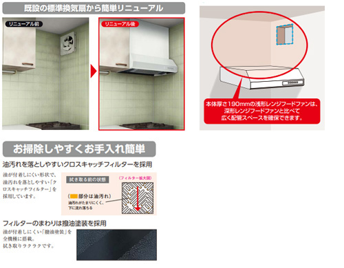 レンジフード[ターボファン][幅60cm][平型][後/上部排気][ホワイト]