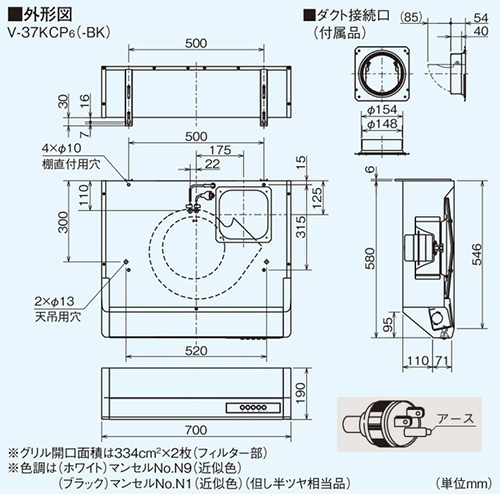 総高さ600mm対応 P-3641KP2-BK(高さ410mm)